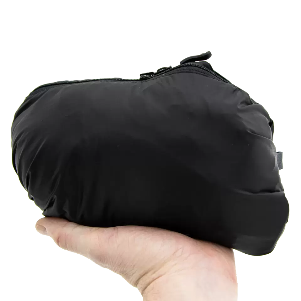 - Verstaubar mittels integrierter Packsacklösung (linke Außentasche)