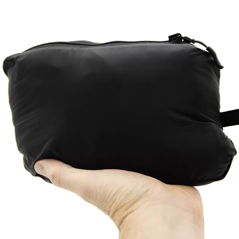 - Stowable by means of integrated pack sack solution (left outer pocket)