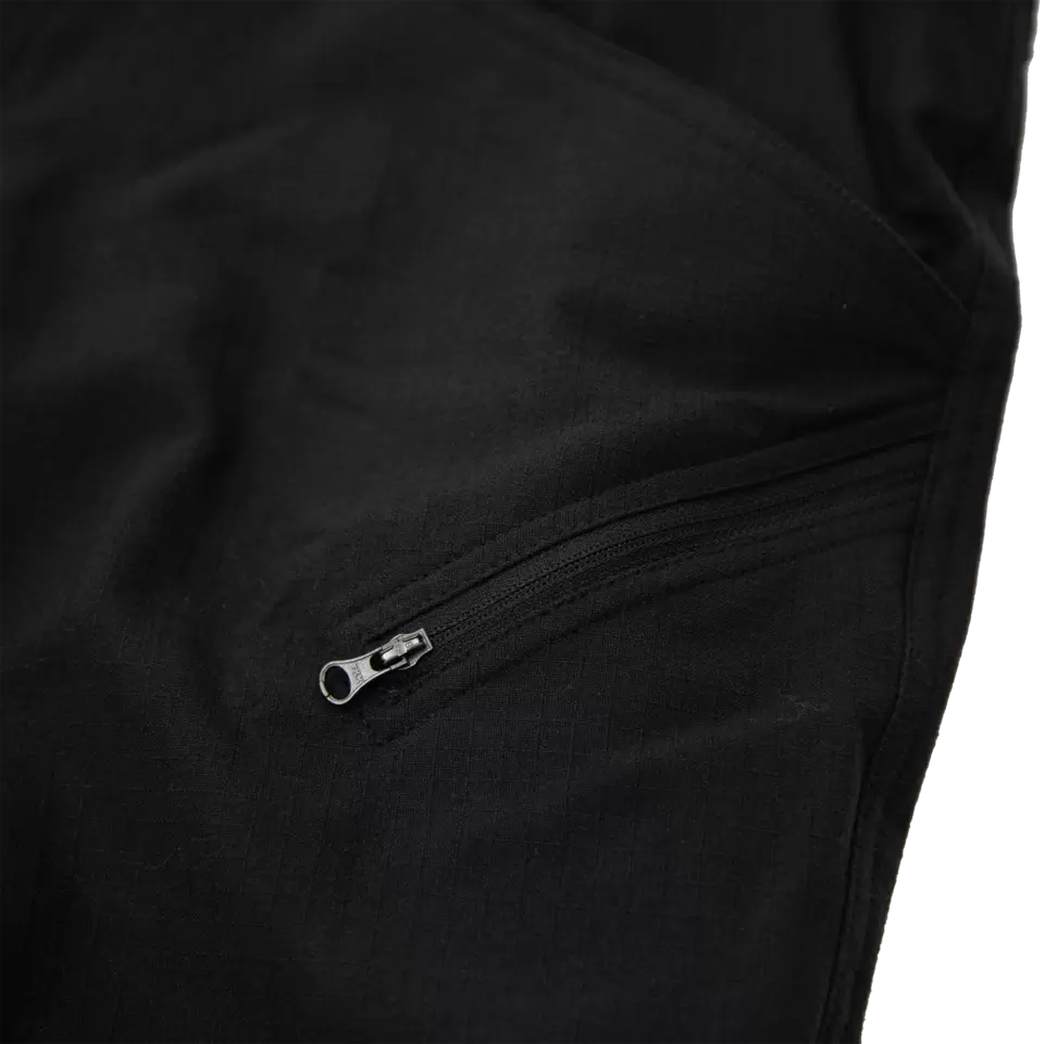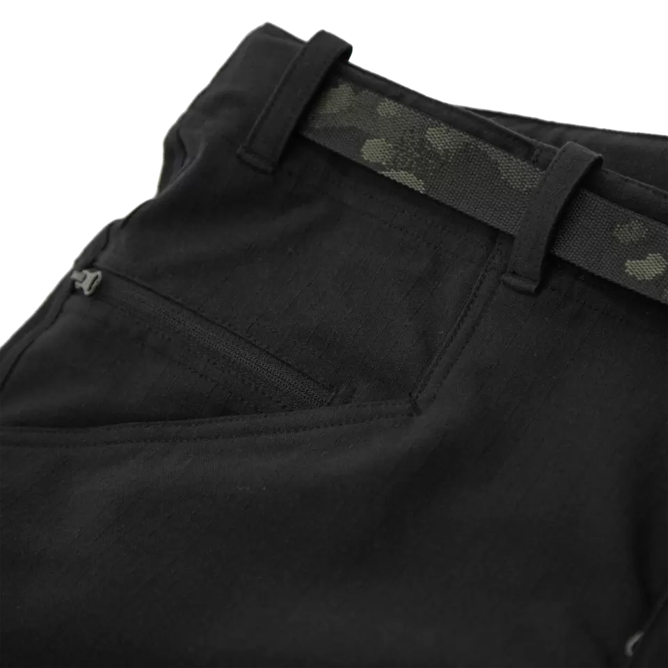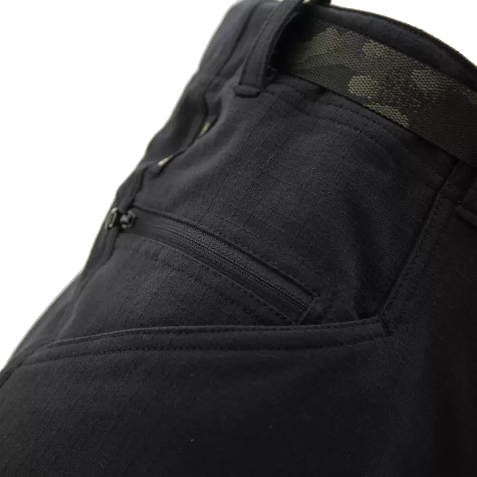 - Tactical storage system: 2 leg pockets with side access and inner mesh for more ventilation, 2 standard trouser pockets, 1 hip pocket with zipper, 1 tactical back pocket