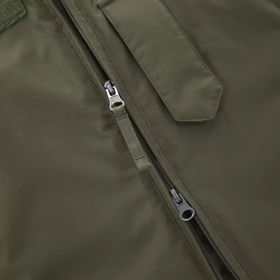 - 2-way front zip with wind flap and chin flap