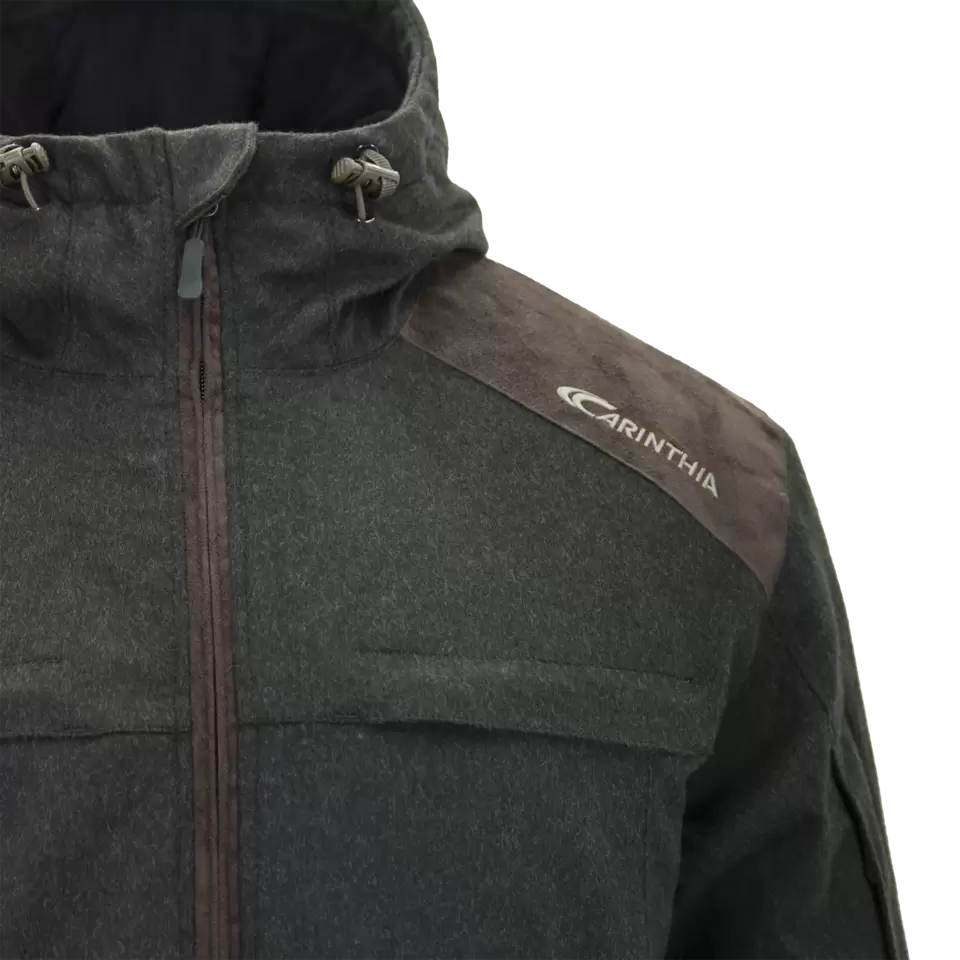 MILG is the abbreviation „Medium Insulation Loden Garment“. The jacket is not only the perfect companion for the shooting stand, but also for hege work and working with the hunting dog. The outer material is of high quality napped loden. The jacket is completely noiseless and is ideal for stalking hunts and hunting areas, where the wildlife is particularly sensitive to extraneous noises. In the lower back, the jacket has a large storage compartment. Thanks to the PU coating, the pocket is waterproof and can be easily washed out. The hood is designed to warm the entire head area without restricting the field of vision.