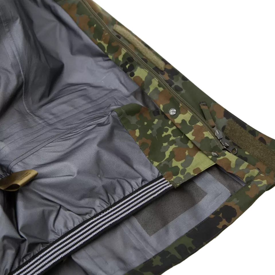 This unlined rain jacket was developed for use in extreme weather conditions and meets the high demands of professional users and special forces.