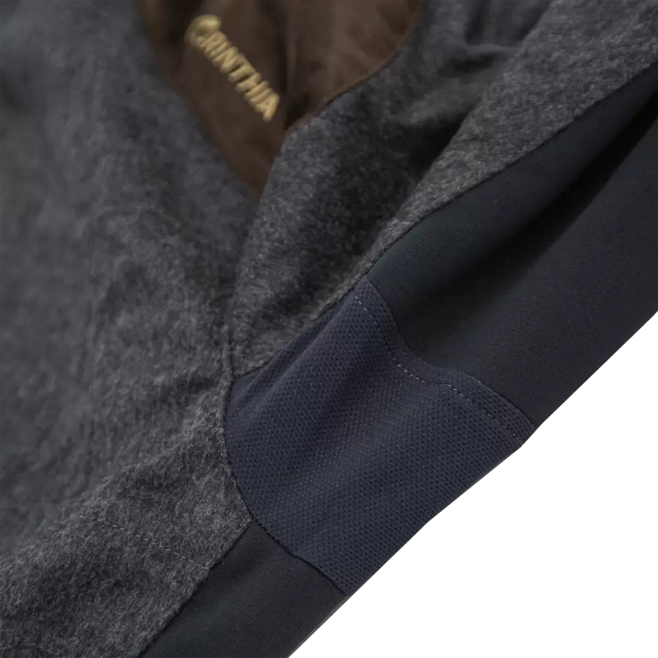 - Empiècements élastiques en thermopolaire extensibles sur les côtés, au niveau des manches et du dos
